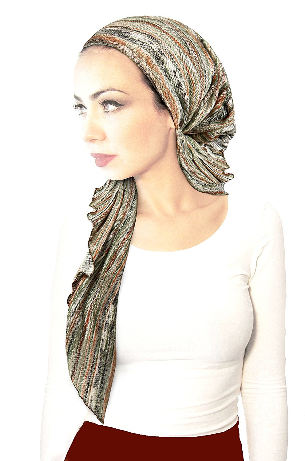 • ShariRose pre-tied head-scarf in our breathable soft textured knit collection! Boho chic headscarf in browns, orange, and greens! See our new how to videos on youtube!