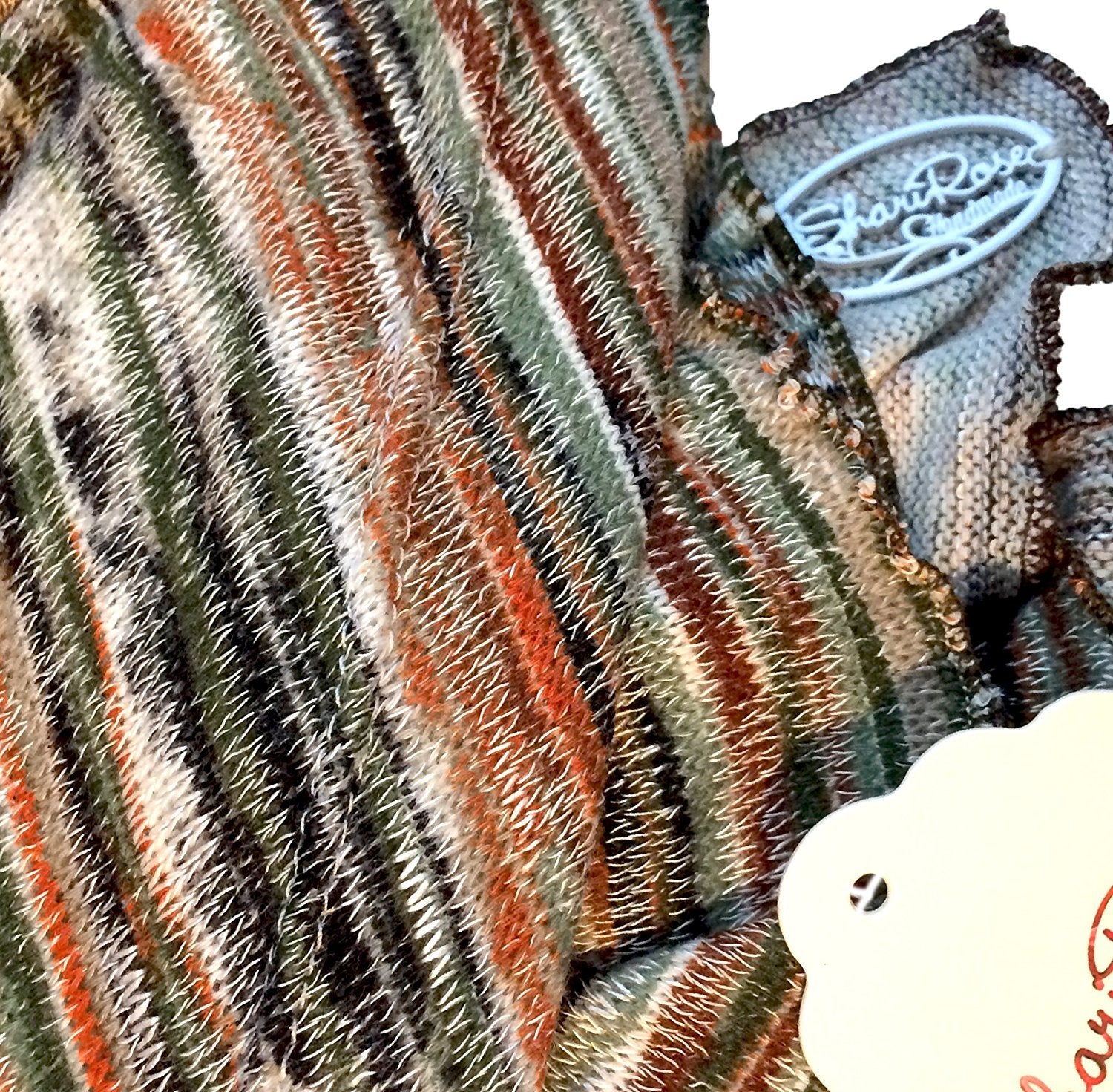 Boho Chic Pre-tied Head-Scarf Tichel Textured Breathable Knit Collection ShariRose (Brown orange green textured knit long - 405)