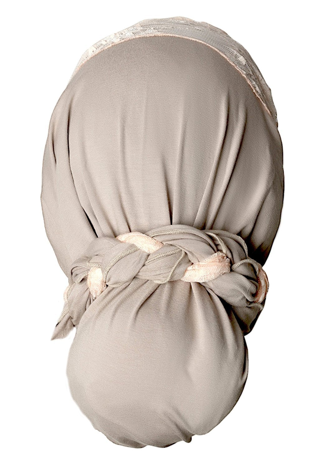 • Taupe Cotton Pre-Tied Head Scarf With Gorgeous Champagne Pink Floral Lace Wrap! Can be worn many ways! See our NEW how to video: https://www.youtube.com/watch?v=7eJa8wYA1vg