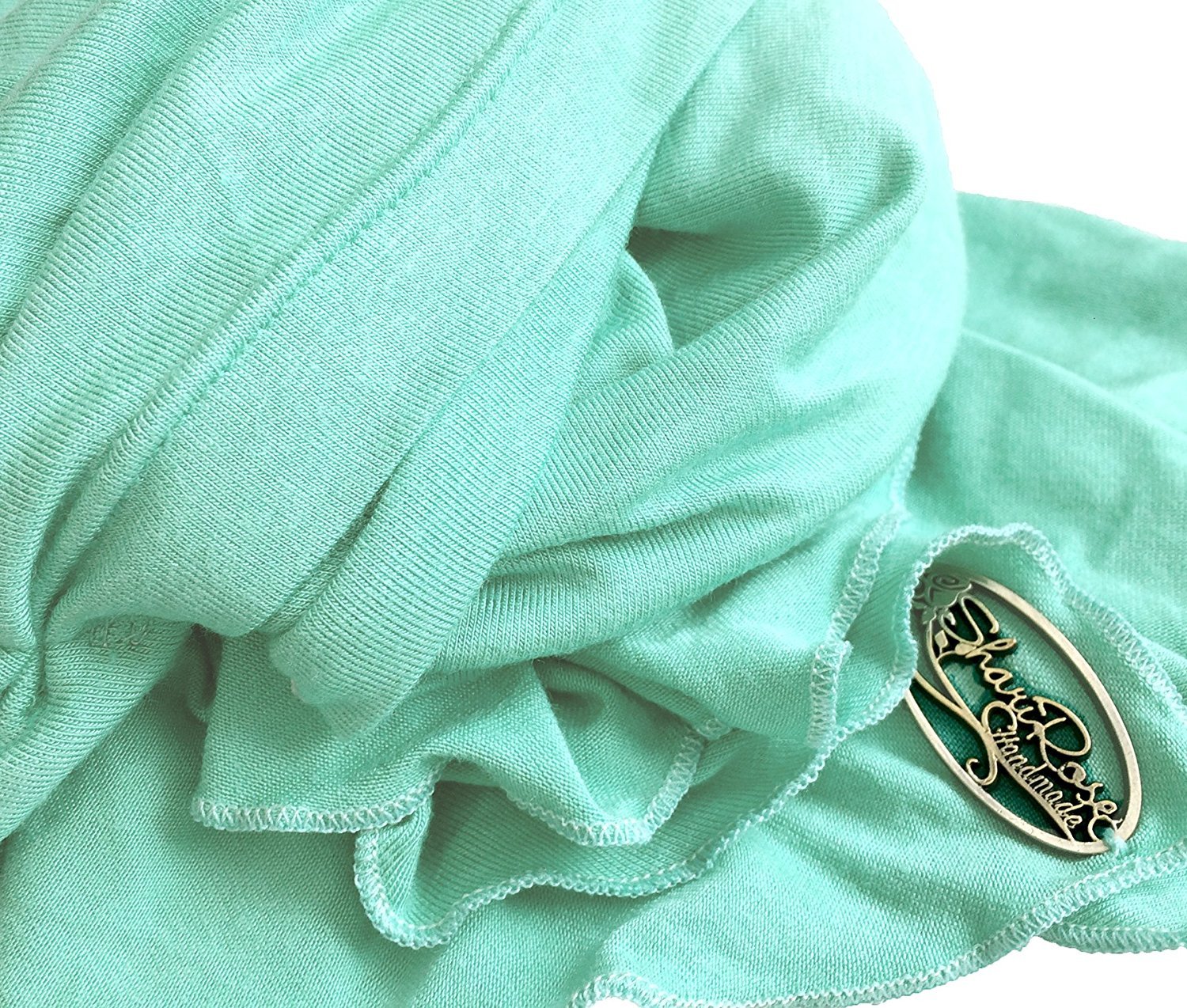Soft mint green head scarf; pre tied head coverings for tichel, hair snood, pre tied bandana, head scarf and bandana wearers. This pre tied offers the benefits of a tichel, hair snood, chemo head scarf & head scarf all in one! Fashionable, Beautiful, Comfortable. Long soft cotton pre tied bandana in your choice of color! Can be worn many ways! Lightweight and perfect for all year round! A hassle-free alternative to covering your hair! Great accessory for tichel, hair snood, head scarf, & bandana wearers! All items designed and sold exclusively by ShariRose and her team of professional seamstresses! Please contact us for any comments or suggestions! To ensure quality and comfort that is behind the "ShariRose" brand, make sure you purchase from our shop ShariRose - Head Scarf and Tichel! Other 3rd parties do not have permission to use our brand or photos for any of their items! Thank you!:)