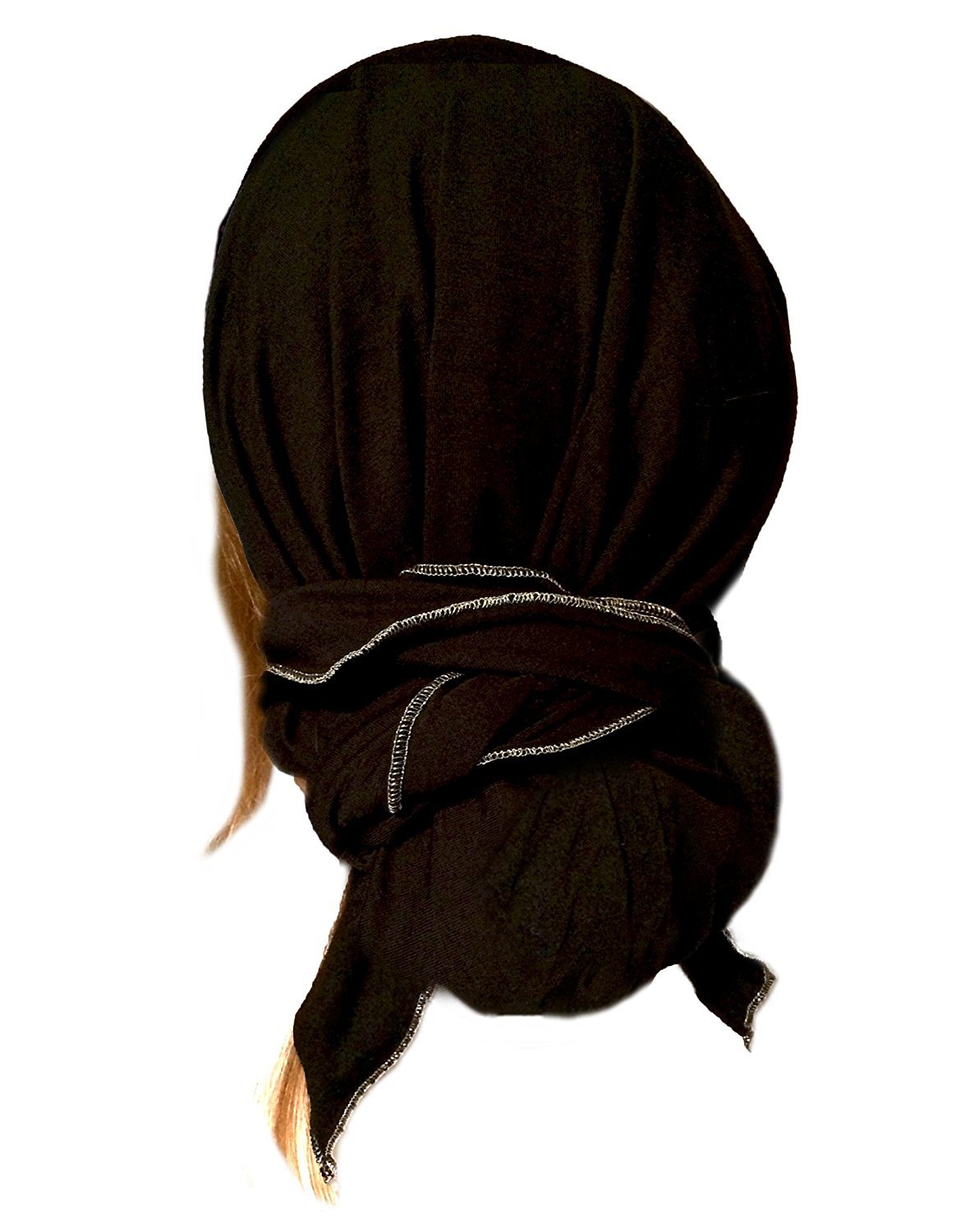 Black head scarf pre tied head coverings for tichel, hair snood, pre tied bandana, head scarf and bandana wearers. This pre tied offers the benefits of a tichel, hair snood, chemo head scarf & head scarf all in one! Fashionable, Beautiful, Comfortable. Long soft cotton pre tied bandana with gorgeous silver over-lock finish! Can be worn many ways! Lightweight and perfect for all year round! A hassle-free alternative to covering your hair! Great accessory for tichel, hair snood, head scarf, & bandana wearers! All items designed and sold exclusively by ShariRose and her team of professional seamstresses! Please contact us for any comments or suggestions! To ensure quality and comfort that is behind the "ShariRose" brand, make sure you purchase from our shop ShariRose - Head Scarf and Tichel! Other 3rd parties do not have permission to use our brand or photos for any of their items! Thank you!:)