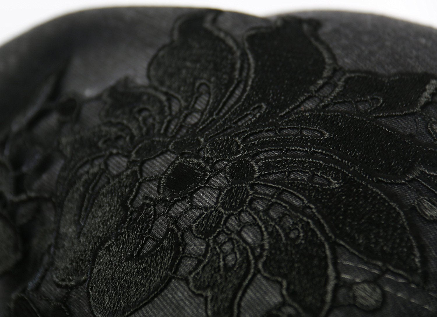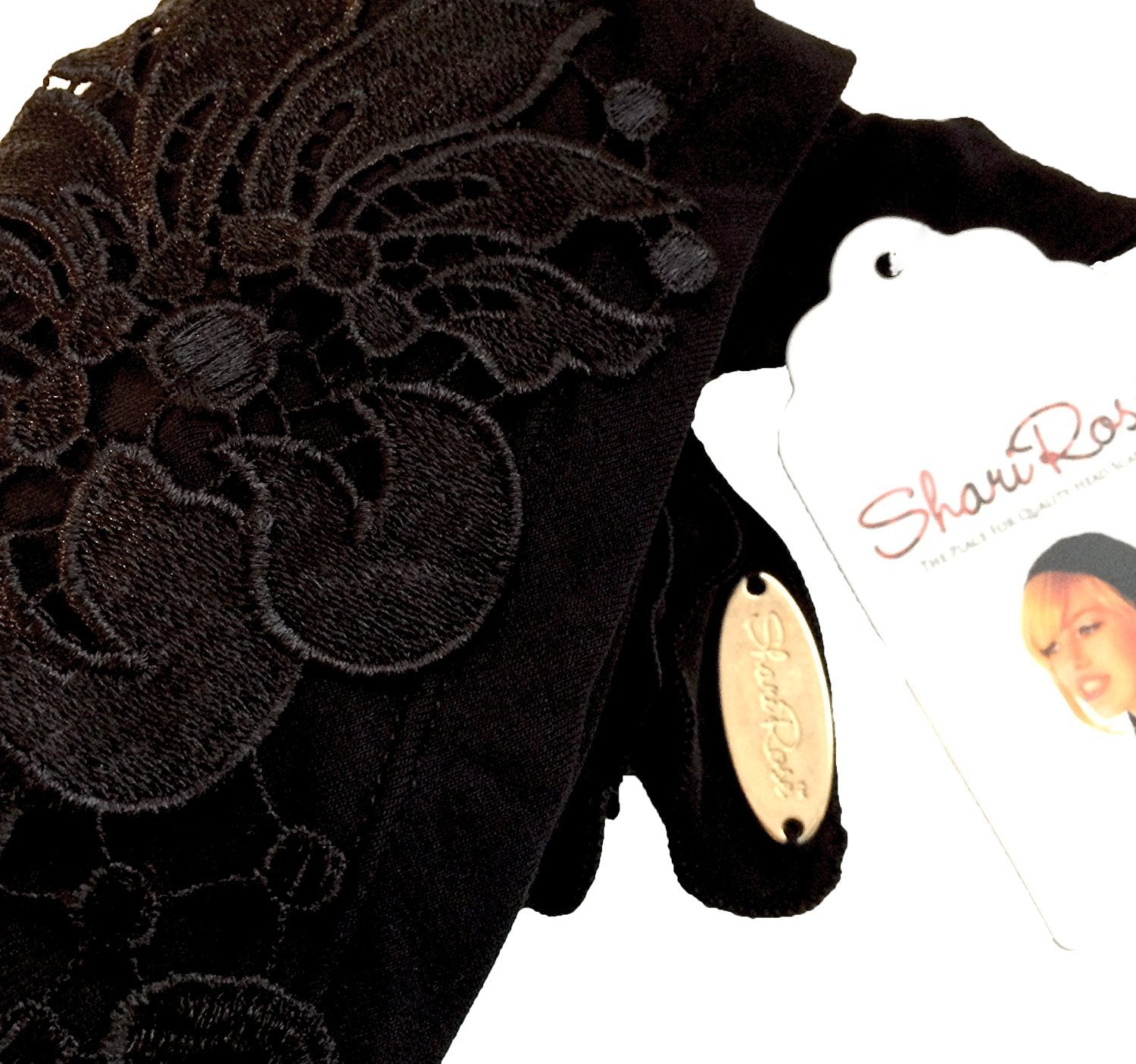 - Gorgeous Black or Gray Cotton Jersey Pre-Tied Head Scarf Embellished w/ Black Floral Applique