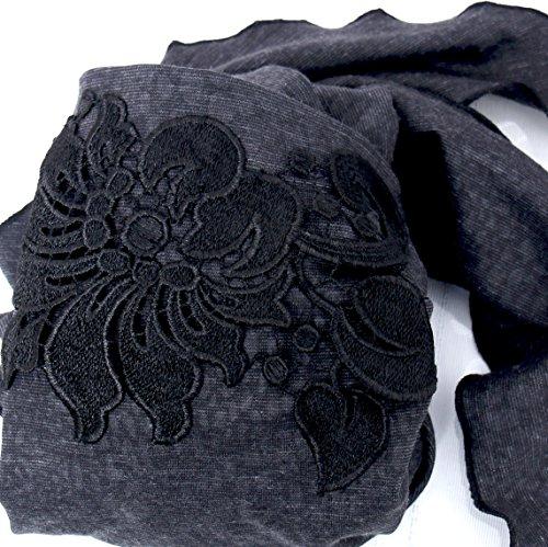 - Black Gray Beige Cotton Pre-Tied Head Scarf Embellished w/ Fancy Floral Applique!