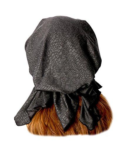 Black gray beige pink head scarf for tichel, hair snood, head scarves, chemo head scarf, pre tied bandana, snoods, and bandana wearers. This pre tied bandana offers the benefits of a tichel, hair snood, chemo head scarf. & head wrap all in one! Gorgeous black gray beige pink cotton jersey pre tied head scarf with a beautiful fancy floral applique! Stunning floral applique is so pretty in person! A must have for those festive occasions! Great accessory for tichel, hair snood, head scarf, & bandana wearers!