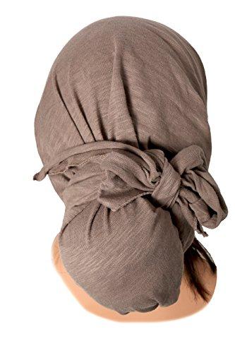 - Stunning Taupe Cotton Pre-Tied Head Scarf Embellished w/ Fancy Floral Applique that goes across the entire front! This boho chic head-scarf is far more stunning in person!